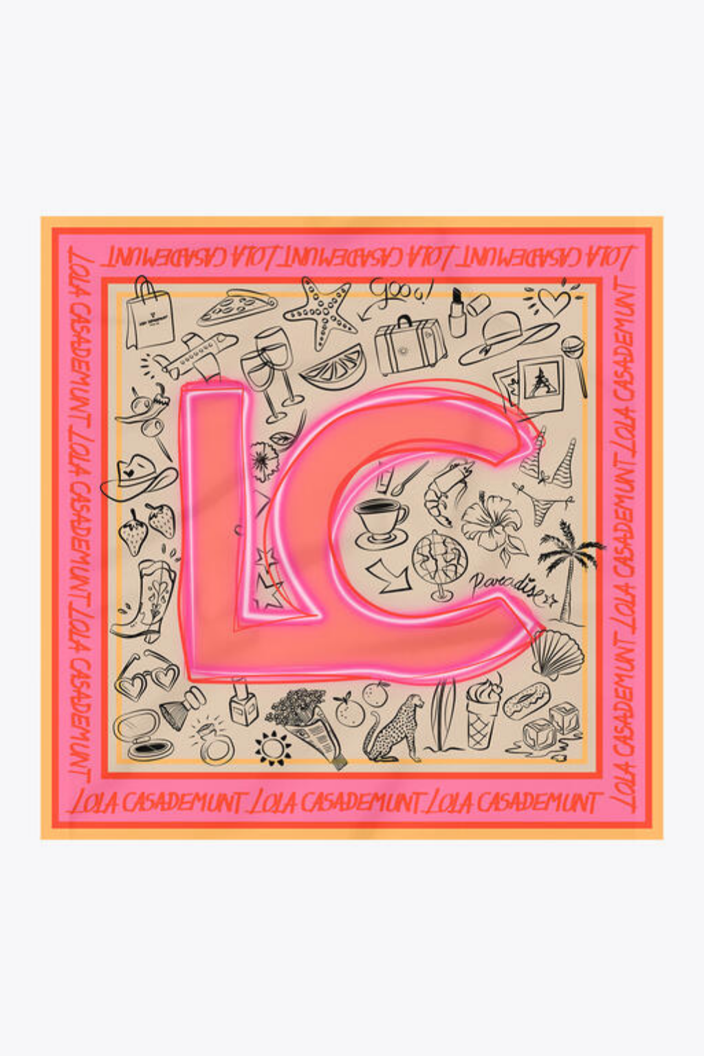 LENÇO DE SEDA CETINADA COM MOTIVOS ICÓNICOS LC - LOLA CASADEMUNT