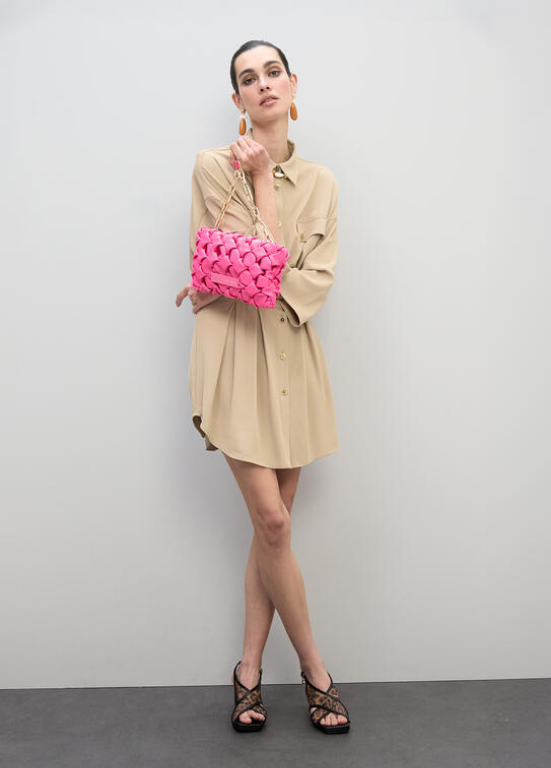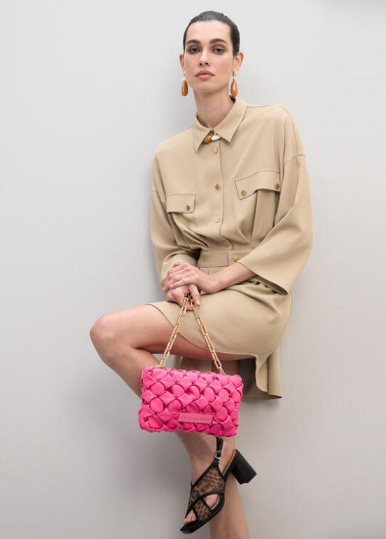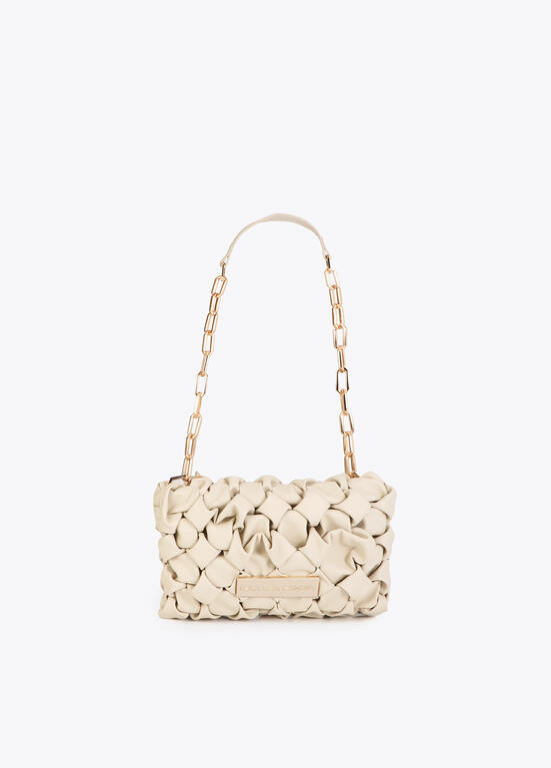 Mala entrançada com alça de corrente elegante. Disponível em 3 cores.