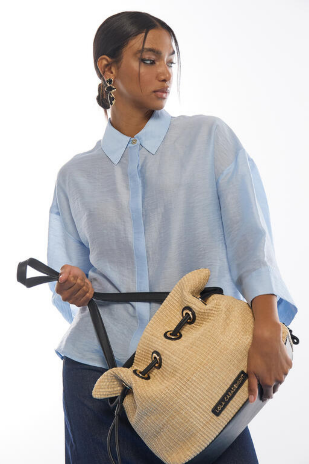 MALA BUCKET EM RÁFIA COM CORDÃO EM ECOPELE - LOLA CASADEMUNT