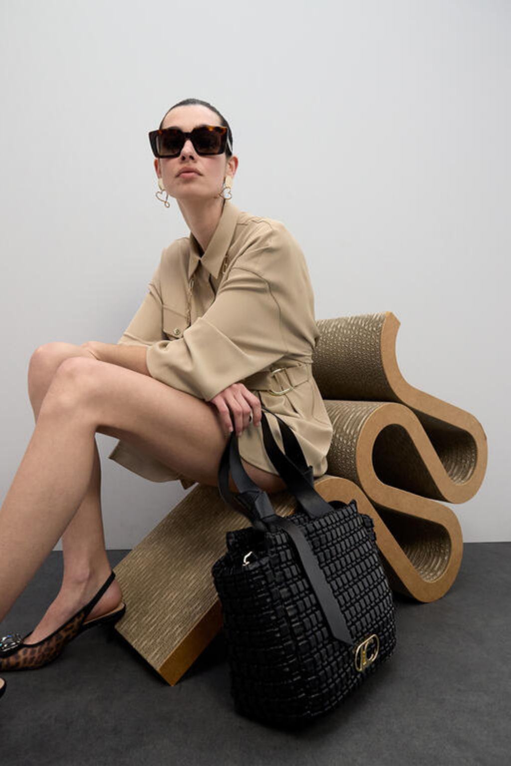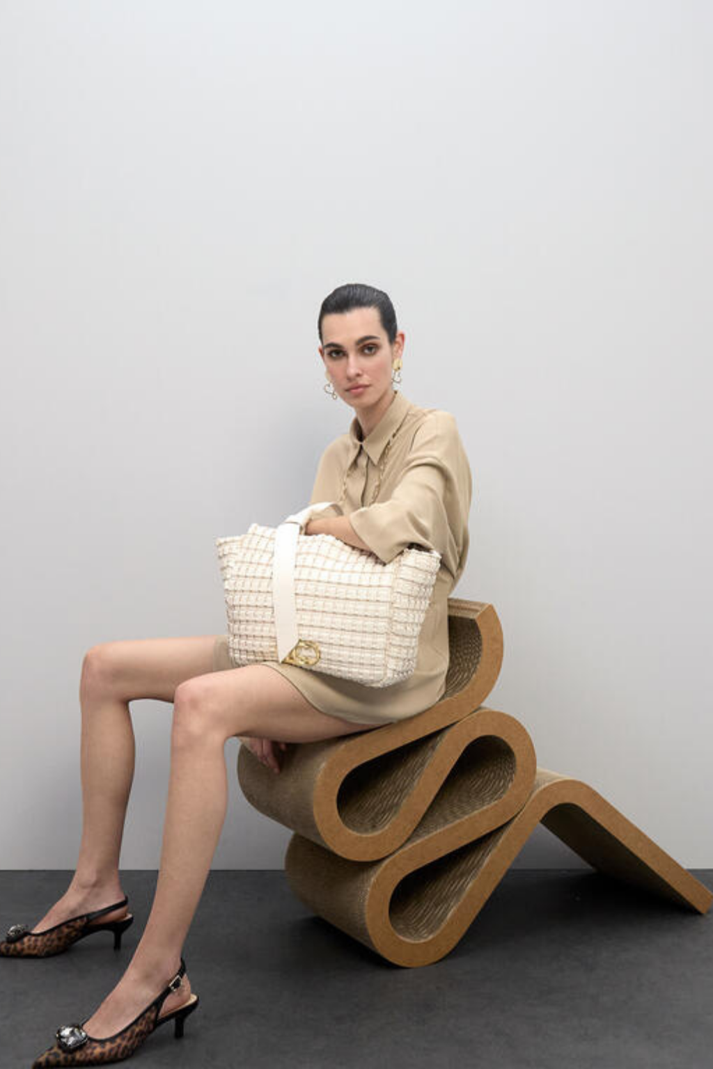 Mala tote com acabamento texturado, alças de ombro e detalhe de logótipo dourado que acrescenta elegância. Espaçosa e prática, perfeita para o dia a dia com um toque sofisticado e moderno.