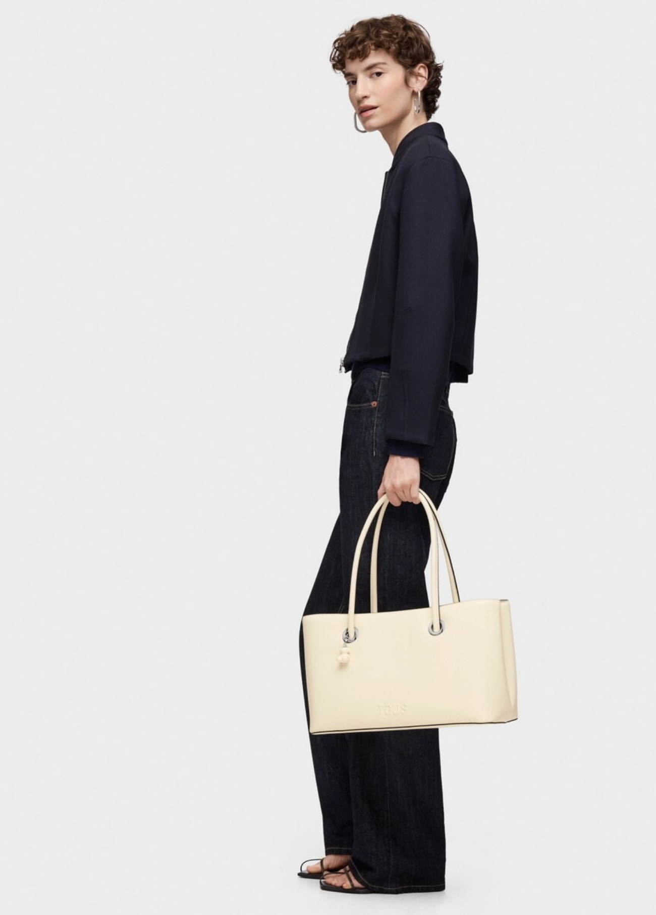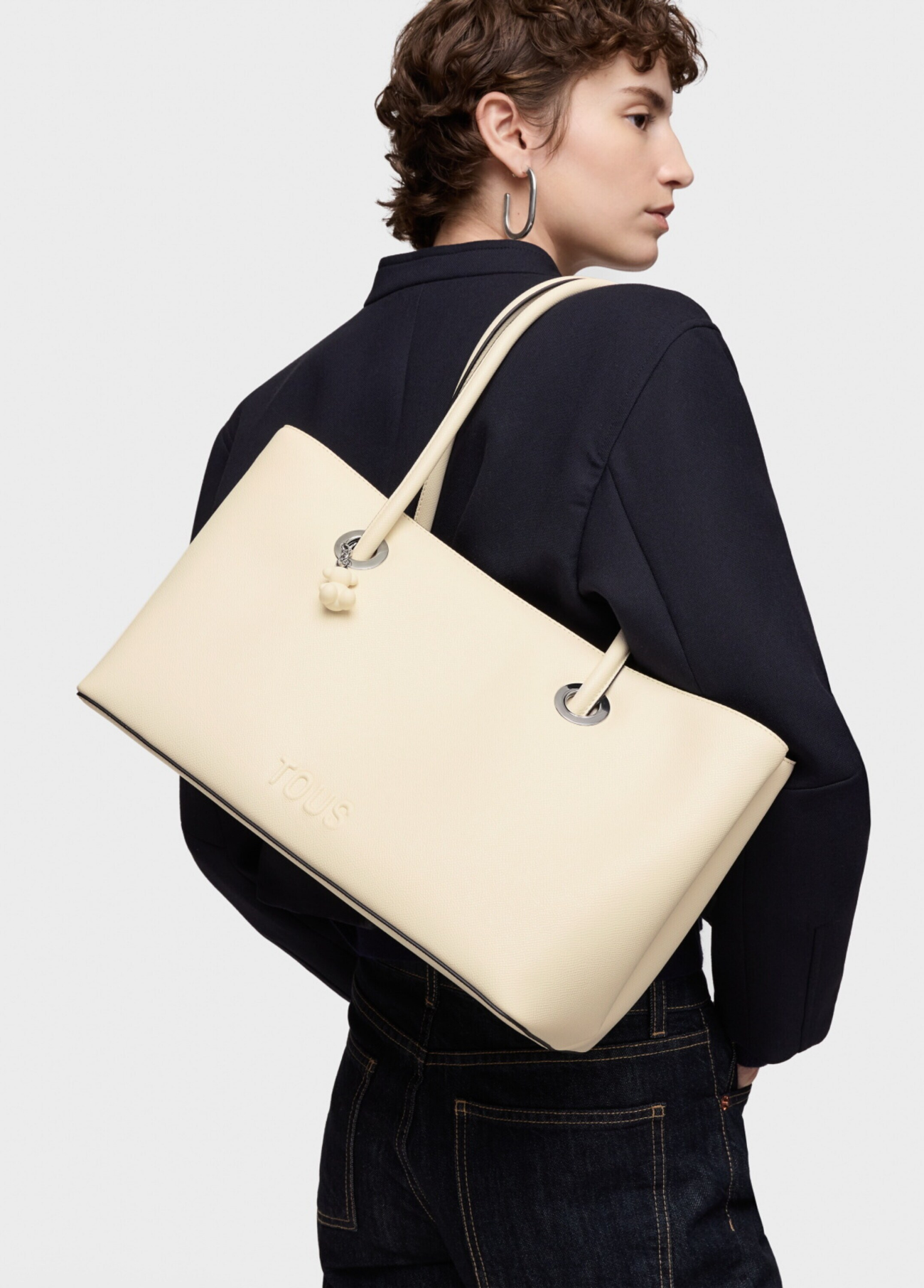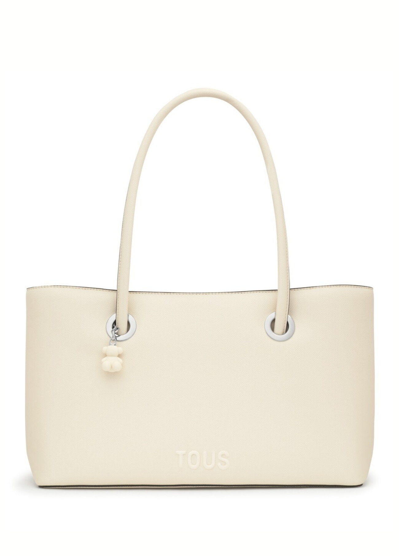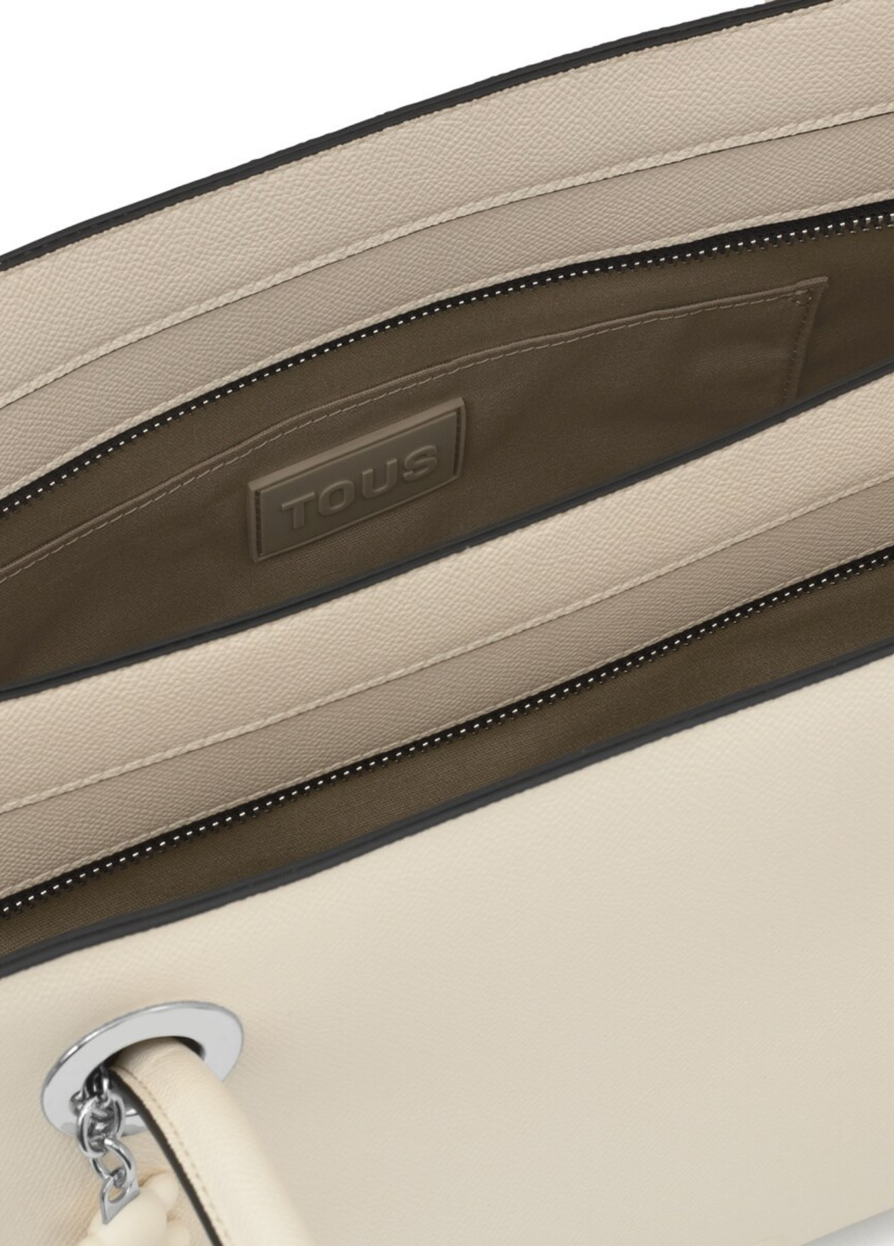 Mala City grande TOUS Poppy em poliuretano na cor bege. Duas divisórias com fecho de correr. Bolso interior aberto. Alças fixas de ombro.