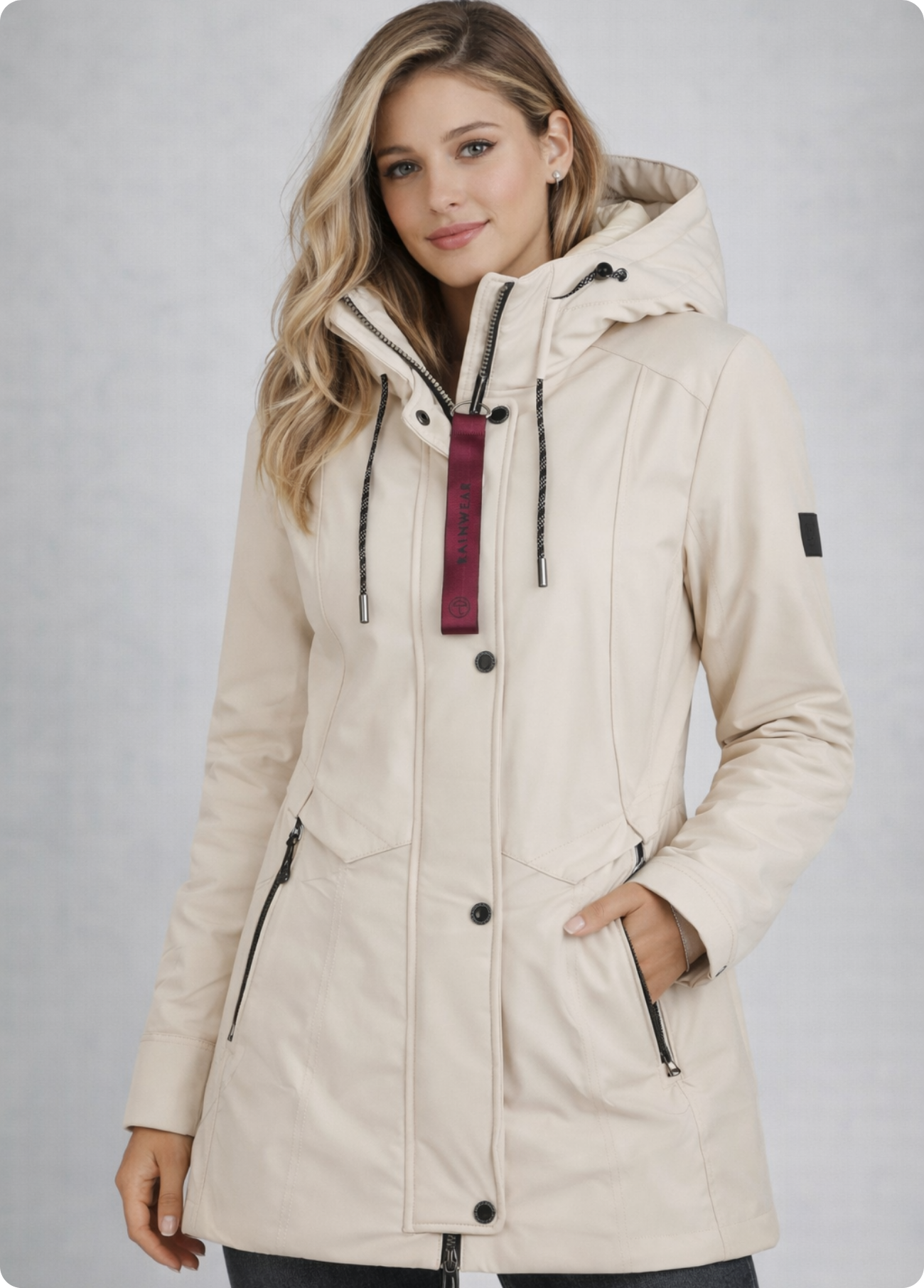 Parka de inspiração urbana e sofisticada, perfeita para os dias frios e chuvosos. Em tom bege suave, esta peça combina funcionalidade e elegância, tornando-se fácil de conjugar com qualquer look.