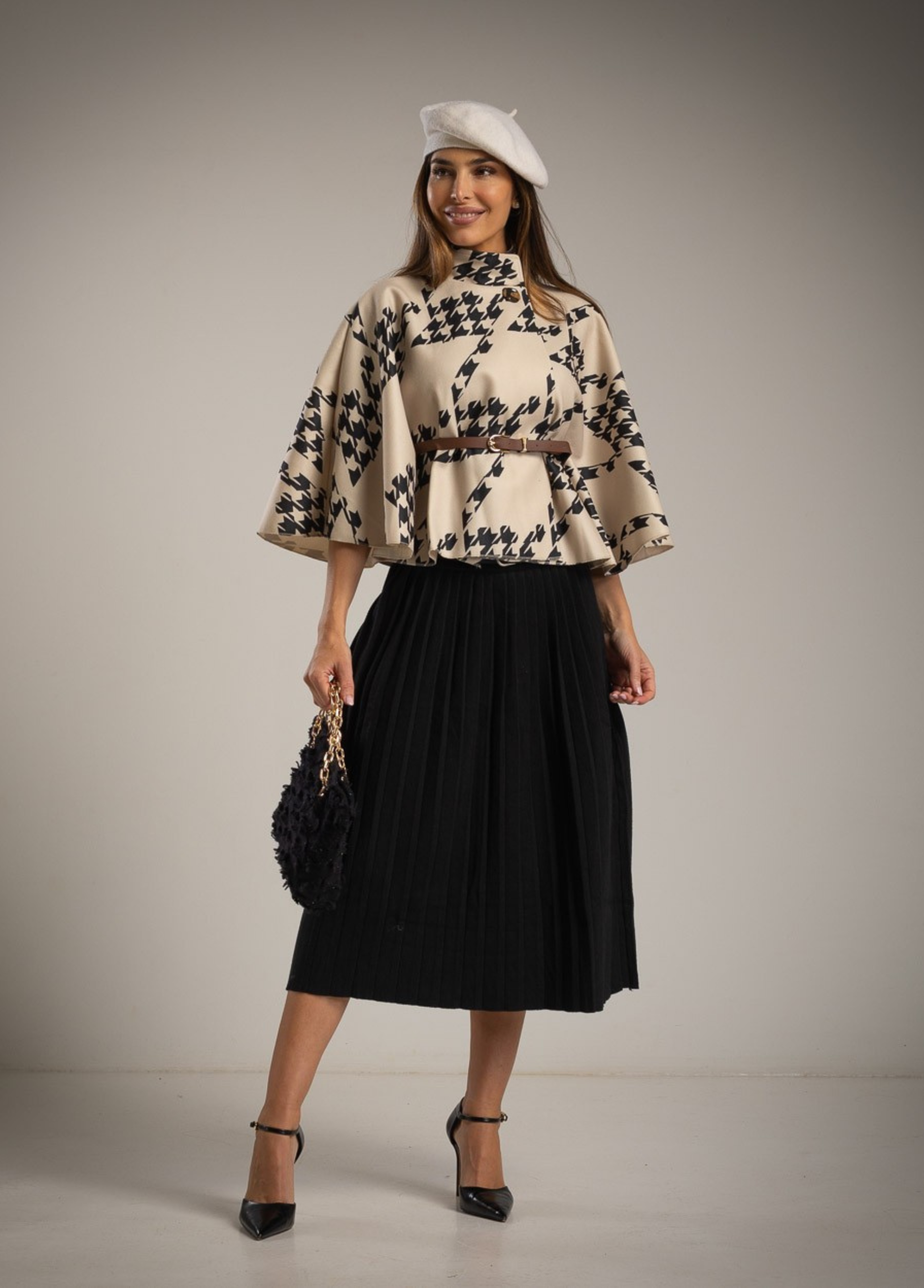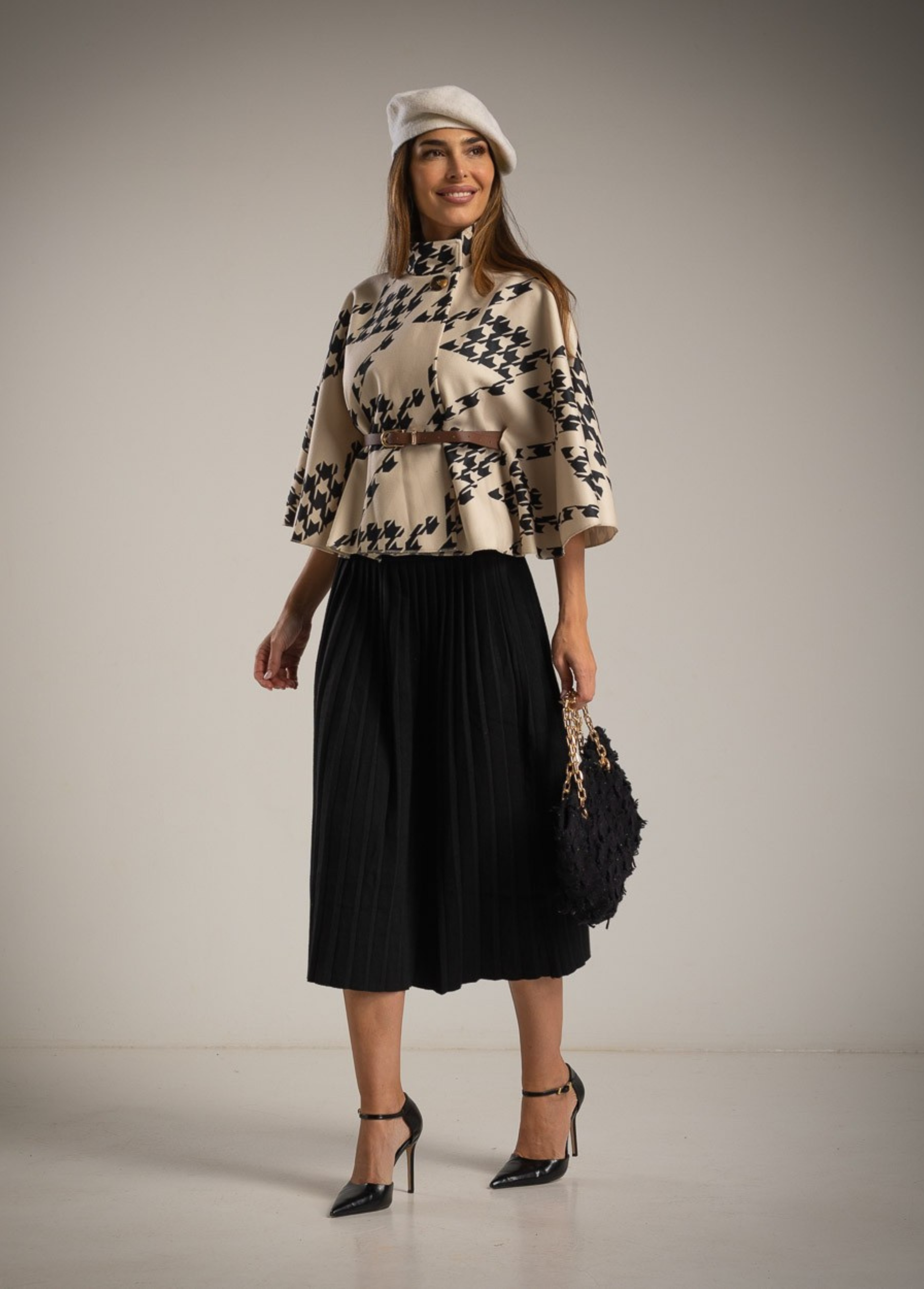 Saia midi plissada em tecido fluido, com cinto fino no mesmo tom, que realça a cintura e adiciona um toque de sofisticação. O seu corte elegante e movimento leve tornam-na perfeita para coordenar com blusas, camisas ou malhas, adaptando-se facilmente do look profissional ao mais casual-chique. Uma peça versátil, moderna e intemporal, indispensável no guarda-roupa feminino.