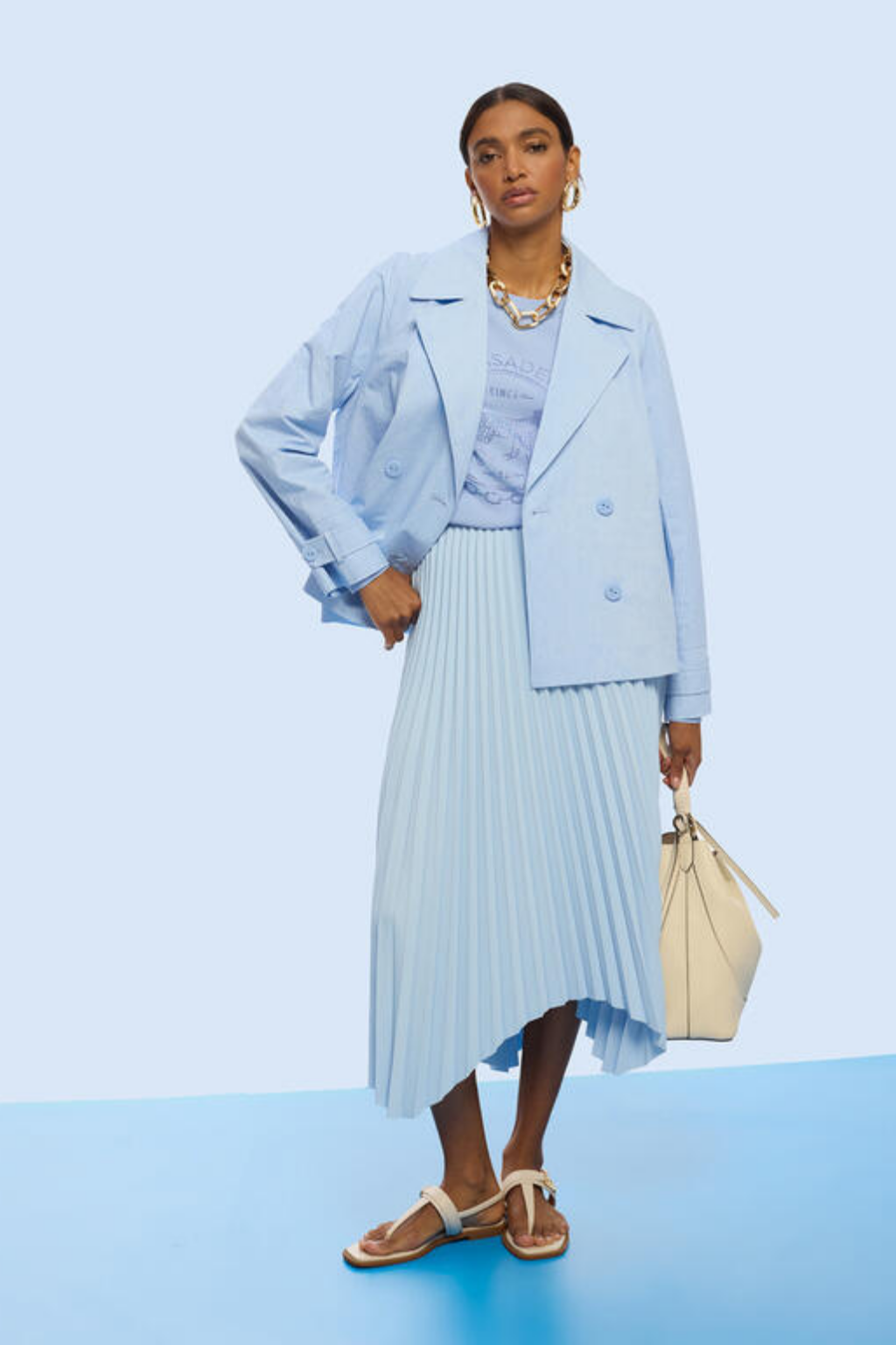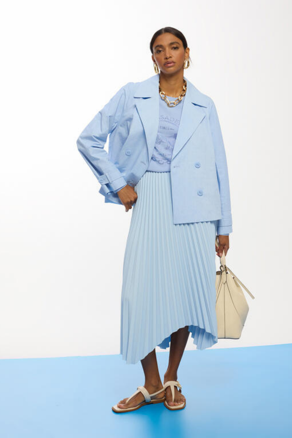 Adicione um toque moderno ao seu guarda-roupa com esta saia plissada assimétrica. Confeccionada em poliéster leve, seu design fluido e elegante melhora qualquer look, ideal para ocasiões casuais ou formais.