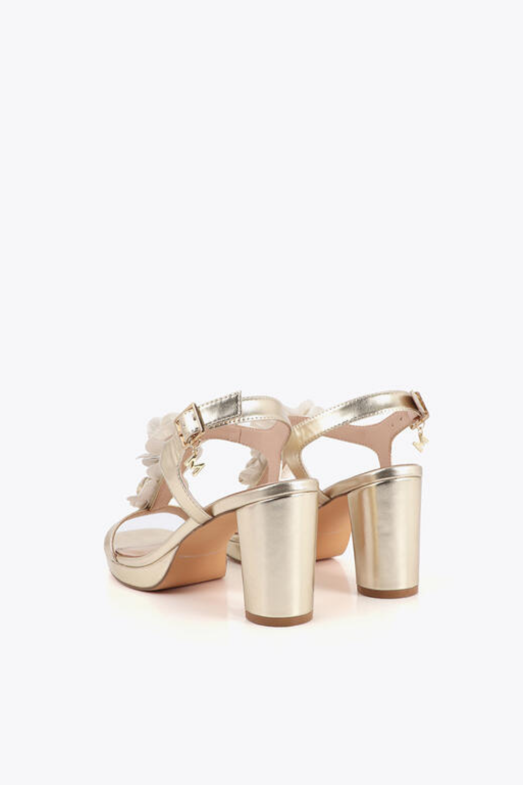 SANDÁLIAS DE SALTO DOURADAS COM DETALHES FLORAIS - LOLA CASADEMUNT