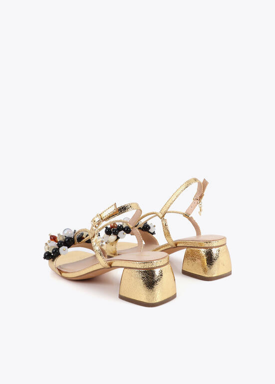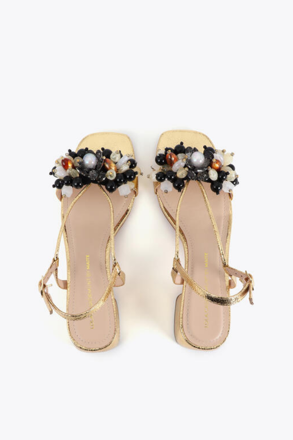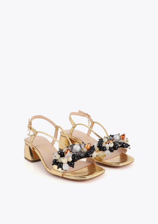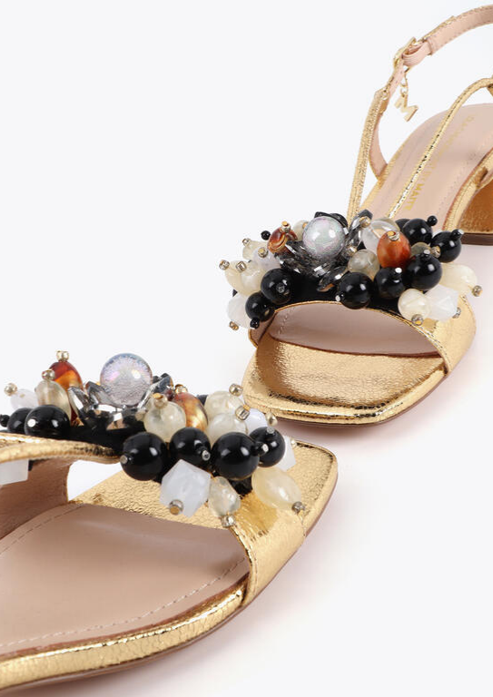 SANDÁLIAS DOURADAS DE SALTO BAIXO COM APLICAÇÕES - LOLA CASADEMUNT