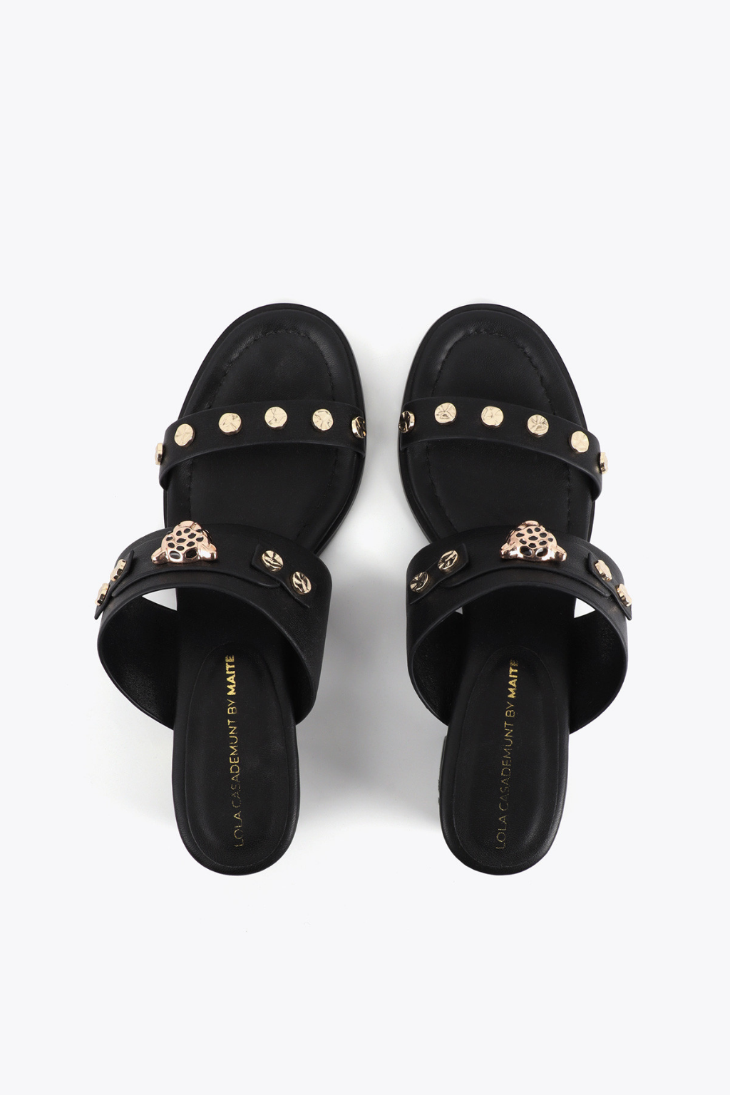SANDÁLIAS DE SALTO COM APLICAÇÃO E CABEÇA LEOPARDO - LOLA CASADEMUNT