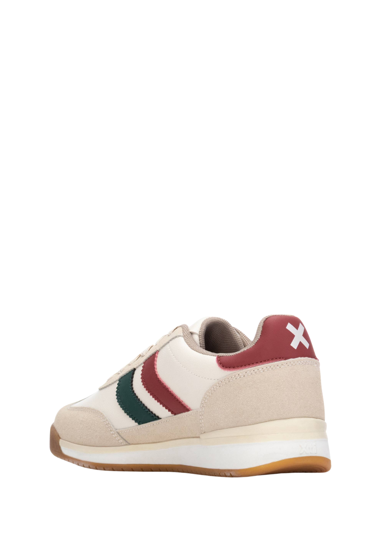Os ténis femininos XTI Shoes unem estilo retro e conforto moderno. Com base bege suave e detalhes laterais em verde e bordeaux, trazem um visual versátil e descontraído.