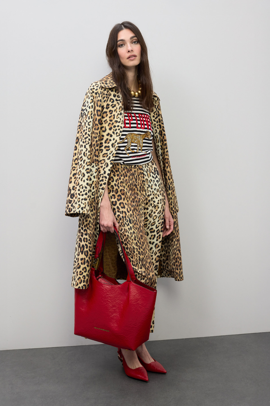 T-shirt listrada em preto e branco com estampa 'Deep Love' na frente. Feita de algodão macio, apresenta um design de leopardo marcante. Ajuste regular, gola redonda e mangas curtas. Perfeita para um look casual e ousado.