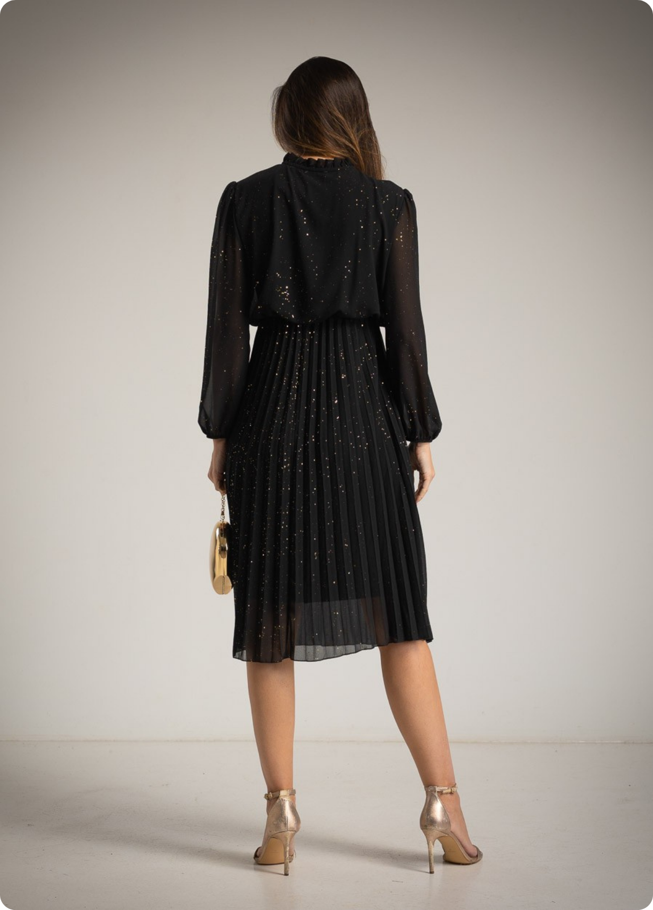 VESTIDO MIDI PLISSADO COM BRILHO - ALBANOS